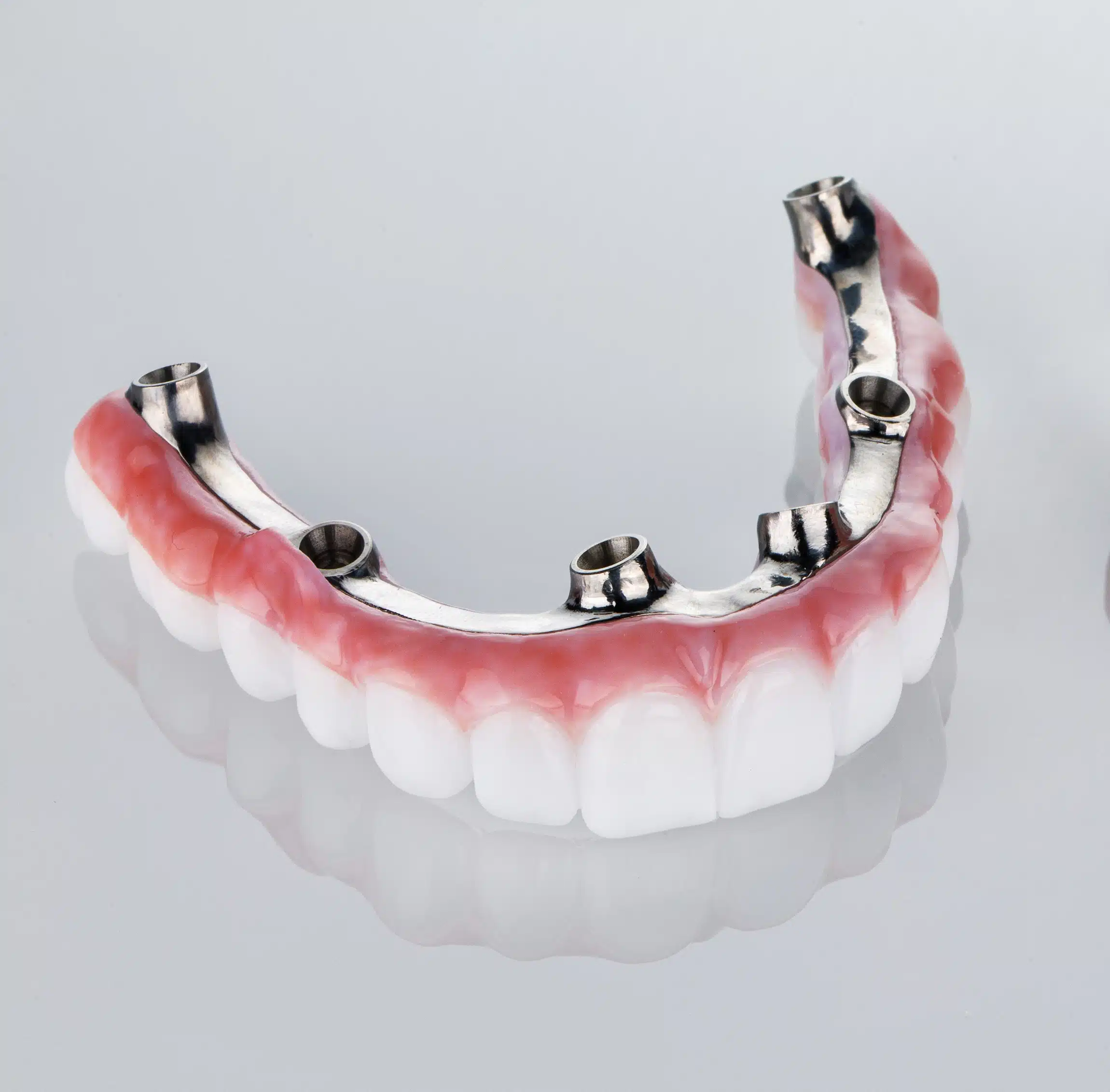 Wir fertigen auf Basis digitaler Planung individuell abgestimmte implantatgetragene Arbeiten. Egal ob Einzelimplantat, mehrgliedrige Brücke oder „All-on-4/6“-Konzepte – unser Labor bietet präzise Passung, Funktion und stabile, ästhetische Ergebnisse.